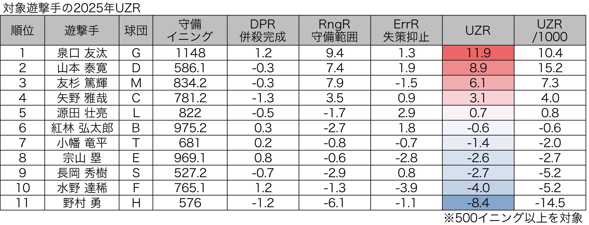 日本は投手が良いんだから野手の守備貢献度は下がる